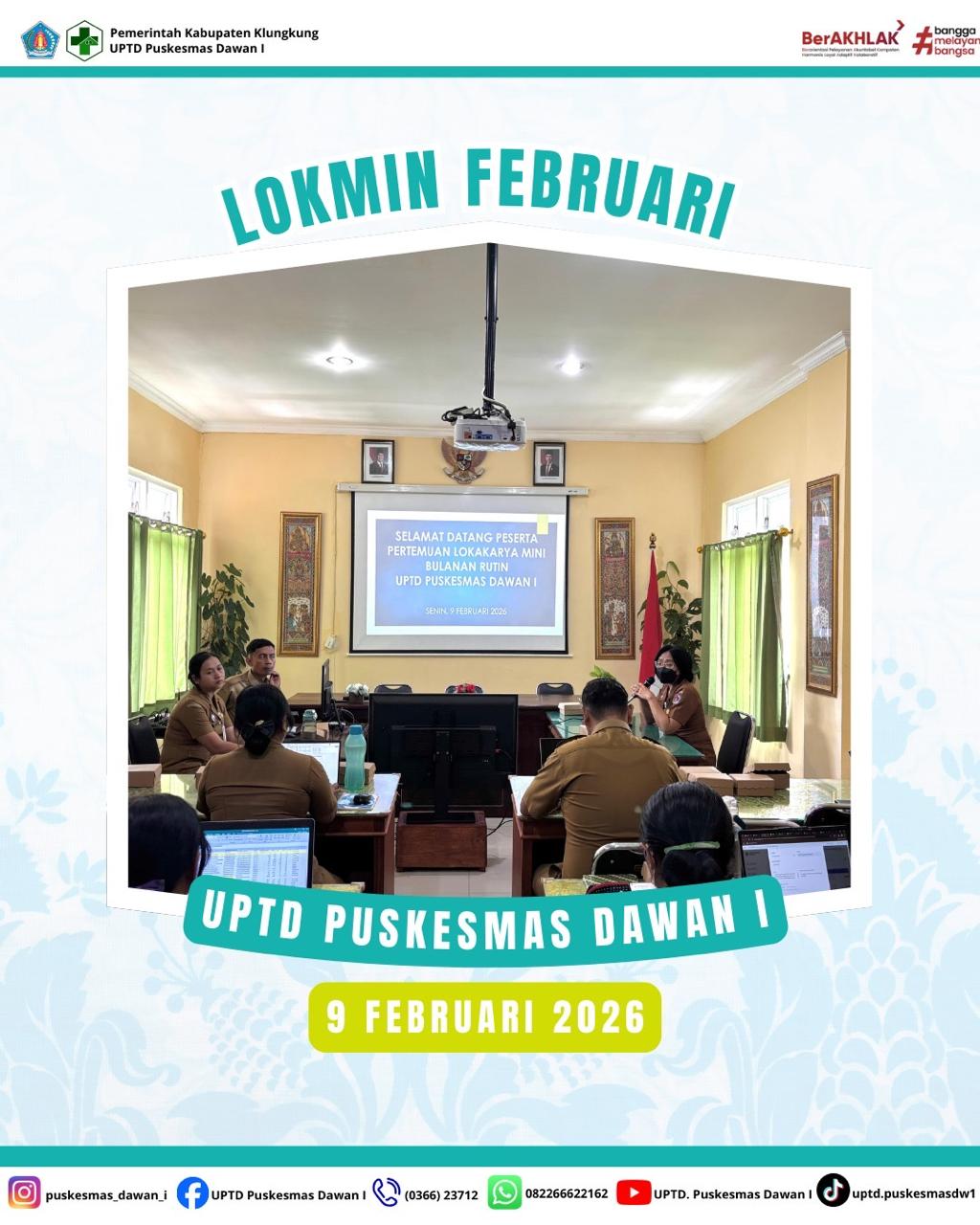 Lokakarya Mini Lintas Program bulan Februari 2026 di UPTD Puskesmas Dawan I. Kegiatan ini merupakan agenda rutin puskesmas sebagai wahana dalam Penggerakan dan Pelaksanaan (P2), dihadiri oleh pimpinan dan staf puskesmas.