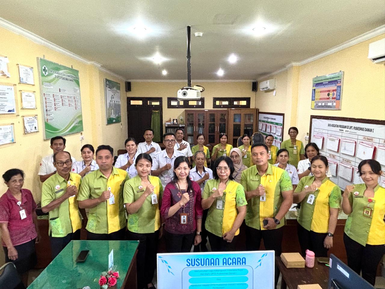UPTD Puskesmas Dawan I menerima kunjungan tim Dinas Kesehatan Kabupaten Karangasem yang mengikuti pelatihan pengelolaan limbah di Fasyankes.