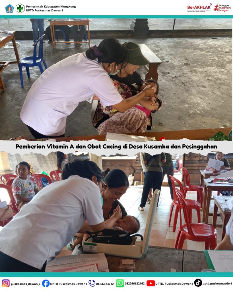 - Kegiatan pemberian vitamin A dan obat cacing pada bayi/ balita di posyandu