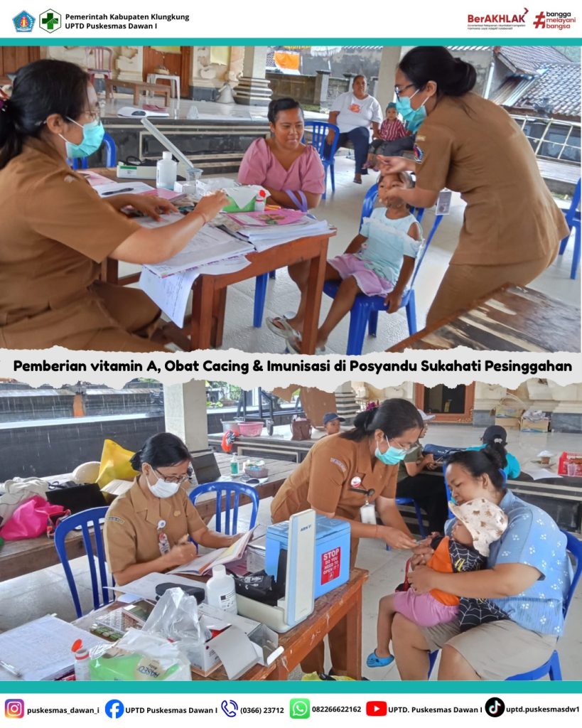 - Kegiatan pemberian vitamin A dan obat kecacingan serta imunisasi pada bayi/ balita di posyandu